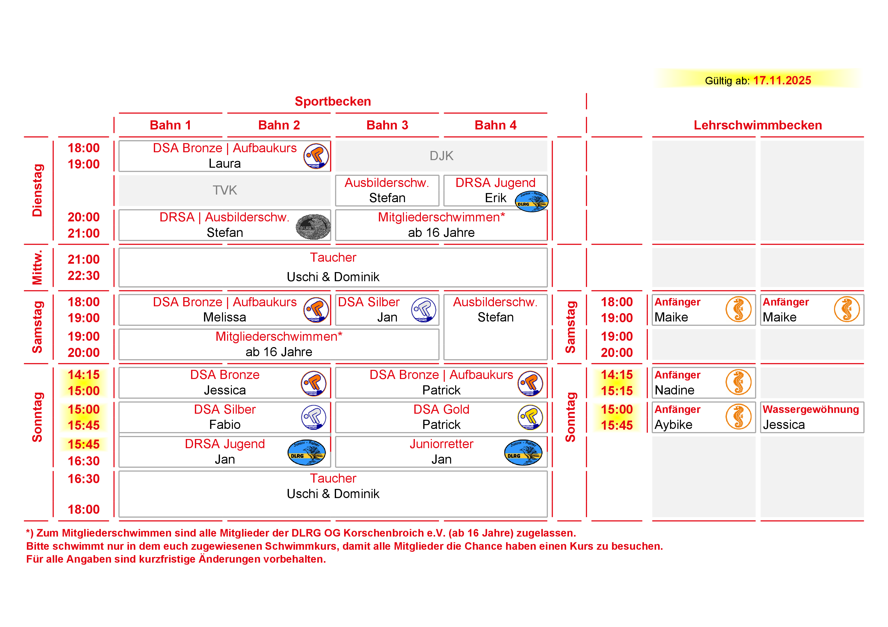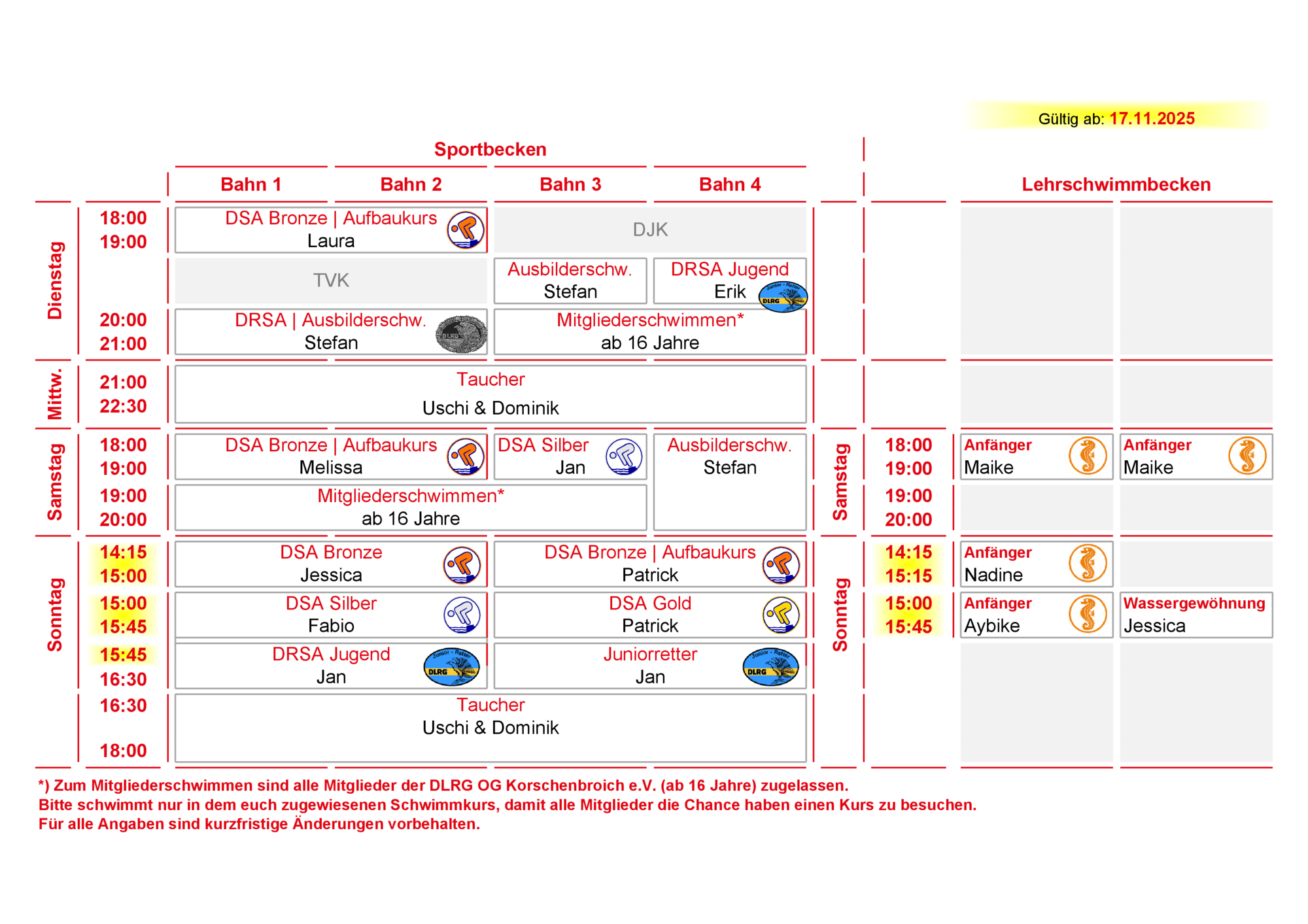 Vollständige Liste der Ansprechpartner der DLRG Ortsgruppe Korschenbroich e.V. findest du hier .
